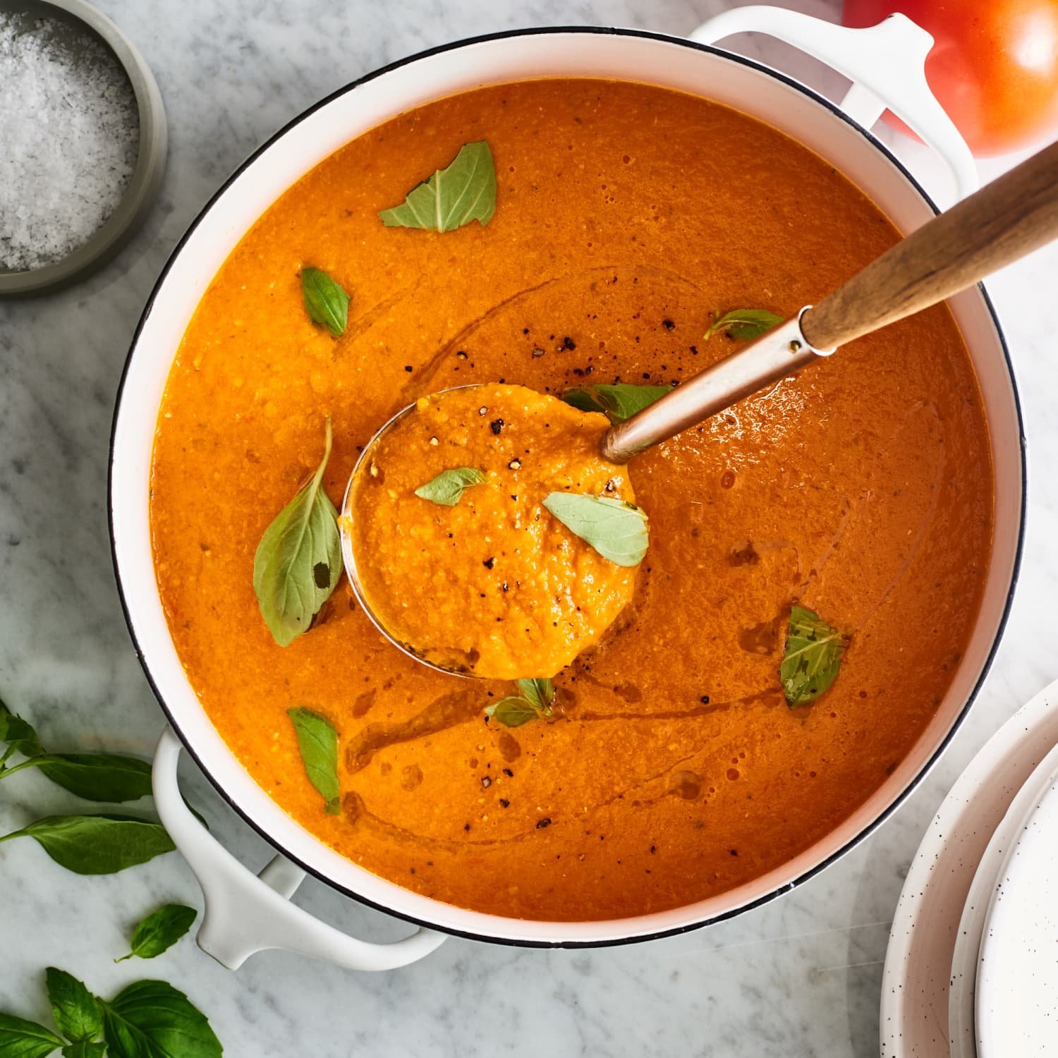 ストックキューブ(またはストックポット)を崩し入れて混ぜ、こしょうで味つけします。