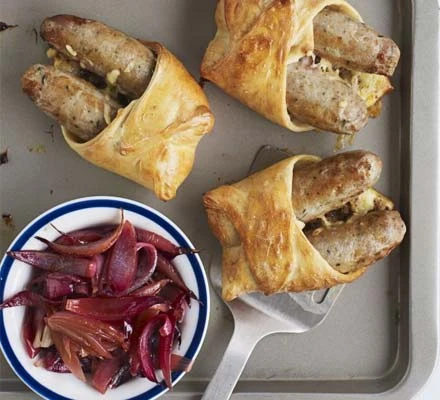 これは家族全員で食べられる分量です。イギリスの伝統的なヨークシャープディングを使って、ソーセージによく合う料理になっています。